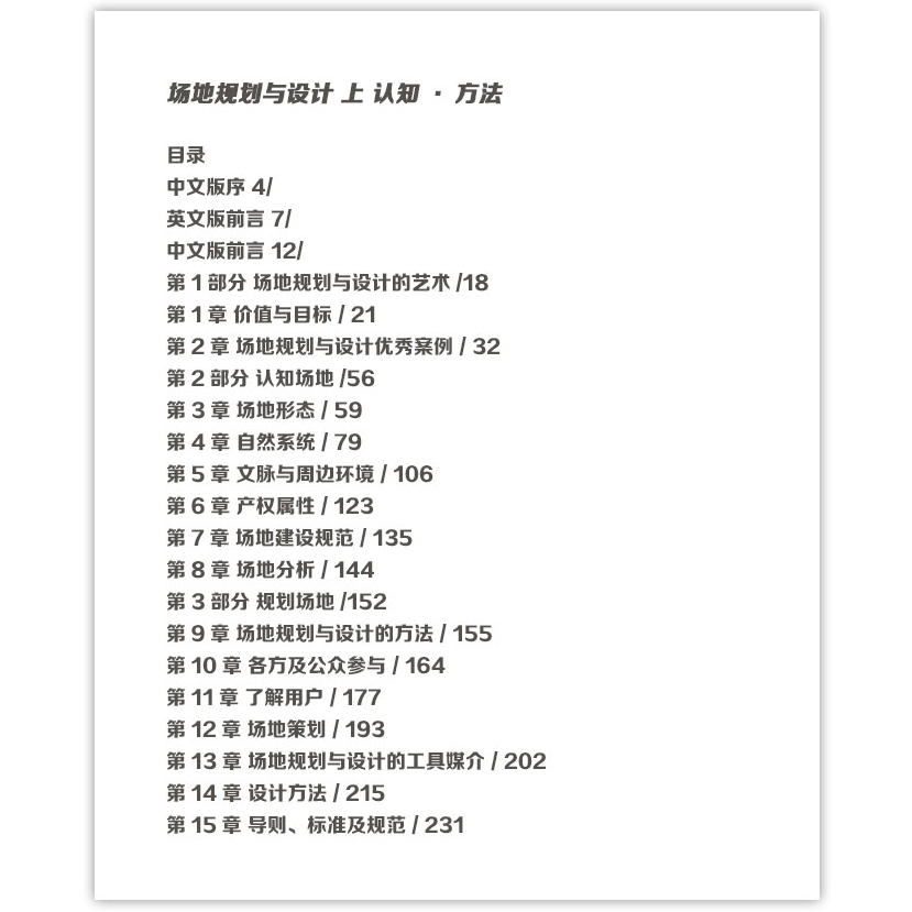 在繼承經典的基礎上,進一步擴展了場地規劃與設計的空間整體性,深化了場地規劃與設計的價值內涵,將案例和資料的視野從美國擴展至全球,展現了場地規劃與設計組織工作的多元化與多樣化,並融入了資訊革命浪潮下湧現的新技術、新方法和結合全球尺度下多樣化的文化語境的思考。 為建築師、規劃師、城市設計師、景觀設計師和工程師提供了一個全面、全新的場地規劃設計指南。