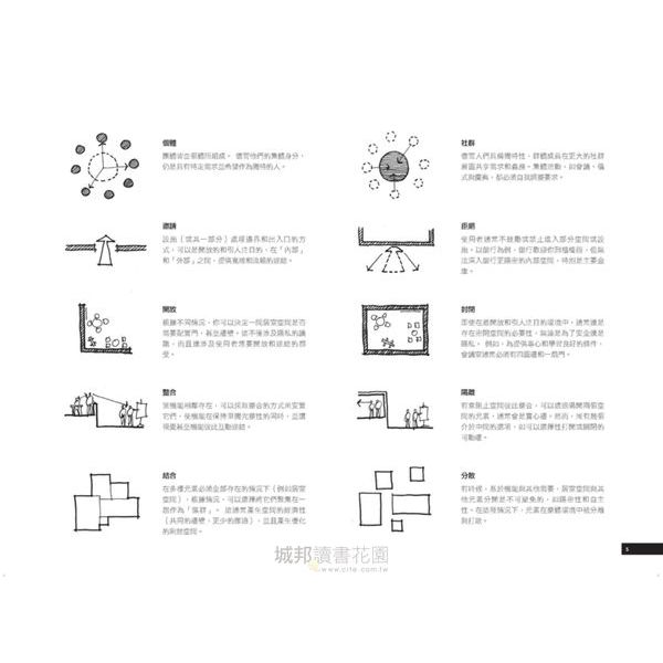 獨創「空間關係思維圖」,視覺化呈現空間功能的關聯與組織,幫助讀者快速掌握空間邏輯。