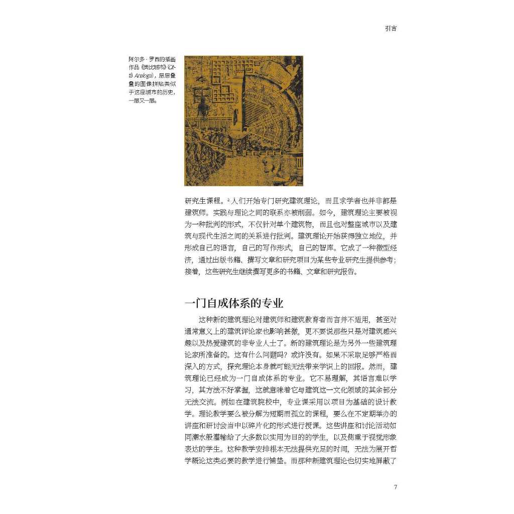 本書以簡潔明了的方式介紹了當下的建築思想,涵蓋了許多關鍵的建築理論概念。書中分為再現、語言、形式、空間、真實、自然、歷史、城市等八章的內容,採用循序漸進的敘事方​​式,將焦點放在思想層面,而非僅聚焦於理論背後的理論家和哲學家們。從帕德嫩神廟到高技派建築,從柏拉圖到勒•柯布西耶、索緒爾,對於學生、建築從業者及任何對建築理論懷有興趣的普通讀者來說,閱讀本書,都可以較快理解建築文化的複雜性,豐富相關知識,促進對建築的思考,步入建築理論之門。