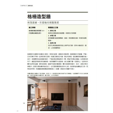 本書系統性拆解「天花板、地坪、牆面、門窗、櫃體」五大空間關鍵構件,整理超過50種常見造型設計,搭配材料搭配邏輯、施工細節與大樣圖,讓讀者能快速了解設計語彙,掌握尺寸與工法,降低施工風險,提高現場溝通效率。