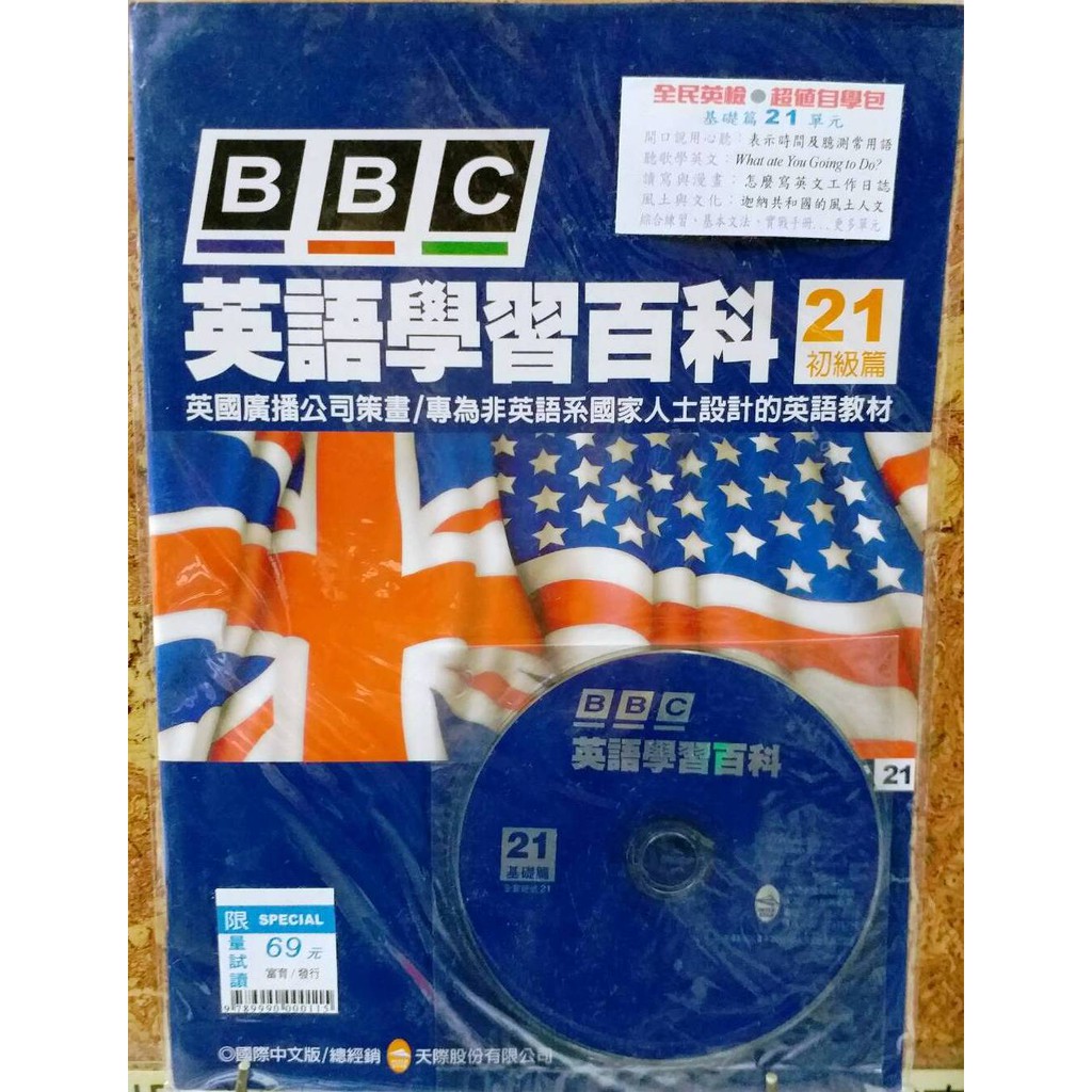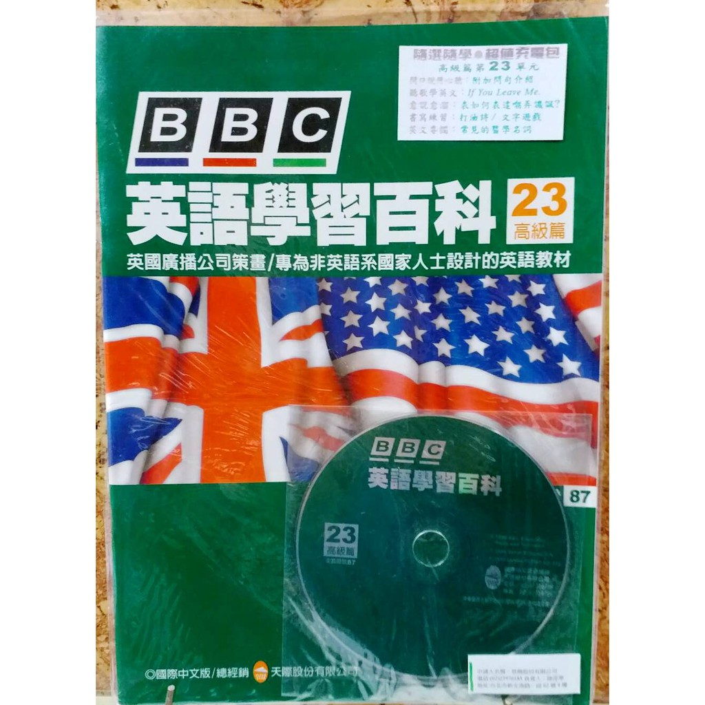 BBC英語學習百科(1書+1光碟) 全世界最具公信力的英語傳播機構─英國廣播公司編撰的英語自學教材 ,出版多種語文版本,幫助許多人學好英語。現在只要你下定決心,每週閱讀,就能在 三至六個月內,快速提昇英語能力。 內容包含三大部份: 第一部份:包羅萬象的全方位聽、說、讀、寫課程教材 第二部份:直覺式學習、全球化視野的英語教學CD 第三部份:專為台灣讀者編寫的實戰手冊。定價149, 售價49元量多可議。購買留言註明要基礎篇或高級篇的那一期,先翻出的是有附贈CD的期數 未登的期數可再詢問