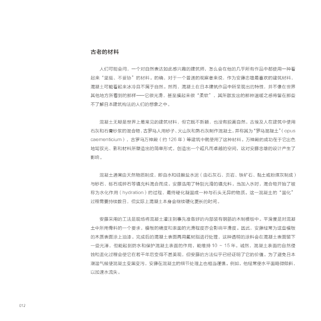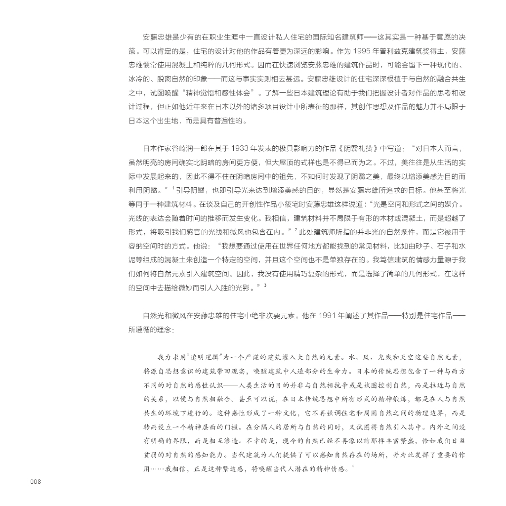 由安藤忠雄作序,闡述了他對住宅設計的理念。菲利普·朱迪狄歐的前言幫助理解這位堅韌、永不妥協的建築師。