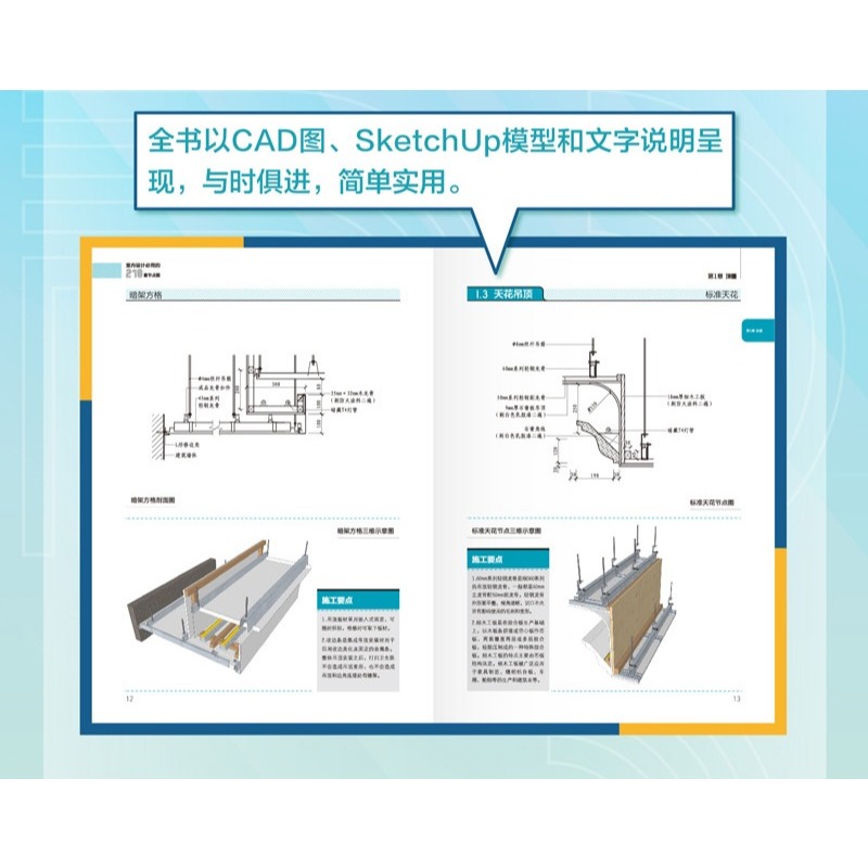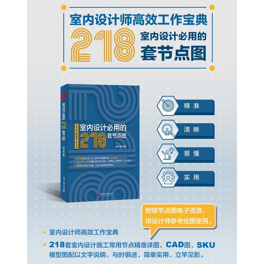 本書大的特色是直擊目前室內設計施工圖痛點,與時俱進、簡單實用、立竿見影。首先,本書的規劃單位長年從事室內設計產業的研究、營運、推廣工作,對產業、企業及設計師有著深刻的認知;其次,本書所收錄的288個節點是從近年完成的眾多經典工程專案中精挑細選而來;後,本書編審小組成員皆來自國內工程師的建築裝飾設計施工企業,他們從事建築細選而來;後,本書編審小組成員皆來自國內工程師的建築裝飾設計、施工企業,他們從事施工圖理論的長期研發與工程學教授。 本書正文部分1-10章依室內設計常見的節點類型劃分,提供CAD 節點圖、3D 示意圖,以及實用的文字說明,圖文並茂,簡潔直觀。編審小組在半年時間內先後召開大小會議幾十次,集中討論時間超過數百小時,對每個節點精雕細刻,反复推敲本書有下列特點:1.內容豐富多樣且全面,細節深度大,相對其他同類書而言,在內容上有保證優勢。本書著重於室內外節點細部構造,系統敘述材料與工藝,以效果圖為輔,圖片精度高,不涉及版權爭議。 2.本人一直從事室內外裝飾設計、材料與施工的課程講授,週邊研究氛圍濃厚,為本書的出版編著奠定了良好基礎。目前市面上同類圖書較多,但是成書品質不高,不適合青年學生和設計師作商業應用,不能引發實踐成效,在高端精緻效果較出版領域是個空白,這為本書的市場定位創造了契機。 3.圖片量大,圖片中有詳細文字施工說明,圖片與文字同台登場,以這種圖解的形式來講解全部內容,弱化傳統的正文表述方式,圖片成組編排,在圖片中附帶文字講解,避免閱讀枯燥無味。整體原則是注重實用性。本書以效果圖、施工圖對照、文字為主,互相穿插,每段文字都指明要點,深入透徹,彩色圖文混排,每個內容均為獨立版面,讀者閱讀輕鬆,方便記憶。全書以彩頁形式編著出版,圖文並茂,圖片清晰,內容性高。版面板式設計新穎唯美,圖片、文字、表格穿插自然富有邏輯。 4.每頁圖面資訊均附施工圖與效果圖模型二維碼,供讀者下載。