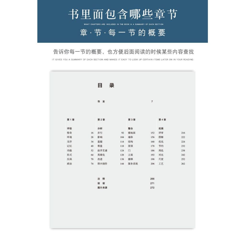 在建築學領域,再多的跟風或浮華的表現都無法掩蓋一個糟糕或不存在的想法。 強大的概念為建築的持久性奠定了基礎,這樣的建築將受到使用者的喜愛和讚賞。這是一本深思熟慮的入門書,明確了在每個階段形成和微調設計概念的重要性。 為年輕建築師提供開發創意和原創概念的基本工具。 闡述了在設計過程的4個步驟中的32個主題。 涵蓋了整個設計階段,從評估場地、解決建築的社會、環境和政治背景、徹底理解項目、裝配建築構件,以及節約、再利用和工藝的創造性方法。 擁有200多個由作者特別繪製的草圖,平面圖和插圖,以及照片參考和具有啟發性的延伸閱讀指南。