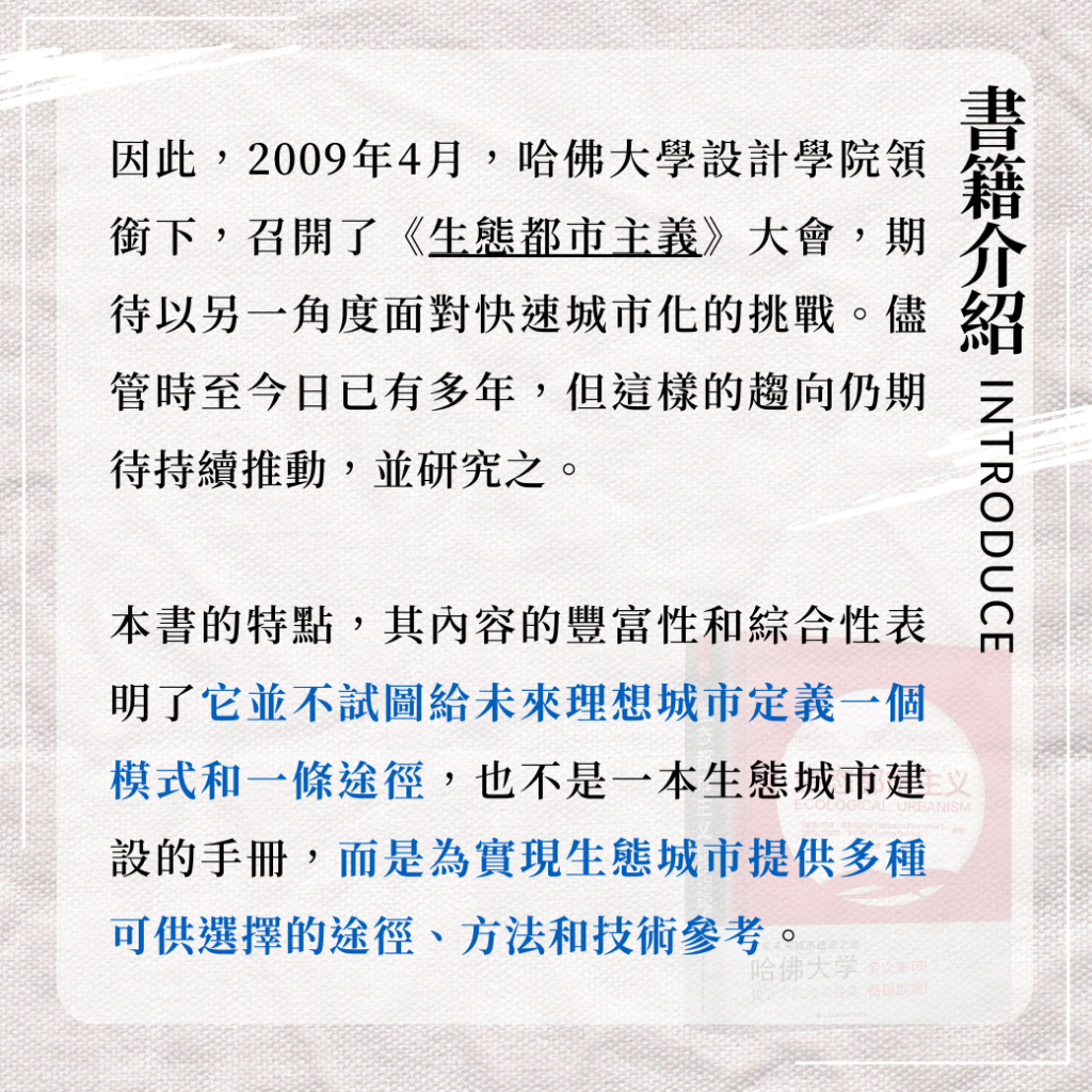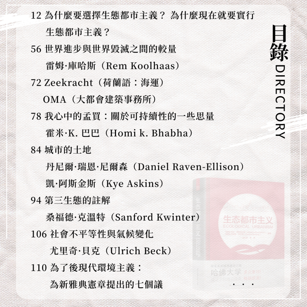 ★★生態城市實現途徑、方法和技術參考,雷姆·庫哈斯,理查·福爾曼,瑪莎·舒瓦茨等多位名家的思想碰撞,學者、設計師、經濟學家、工程師等對生態都市主義的理論箴言
