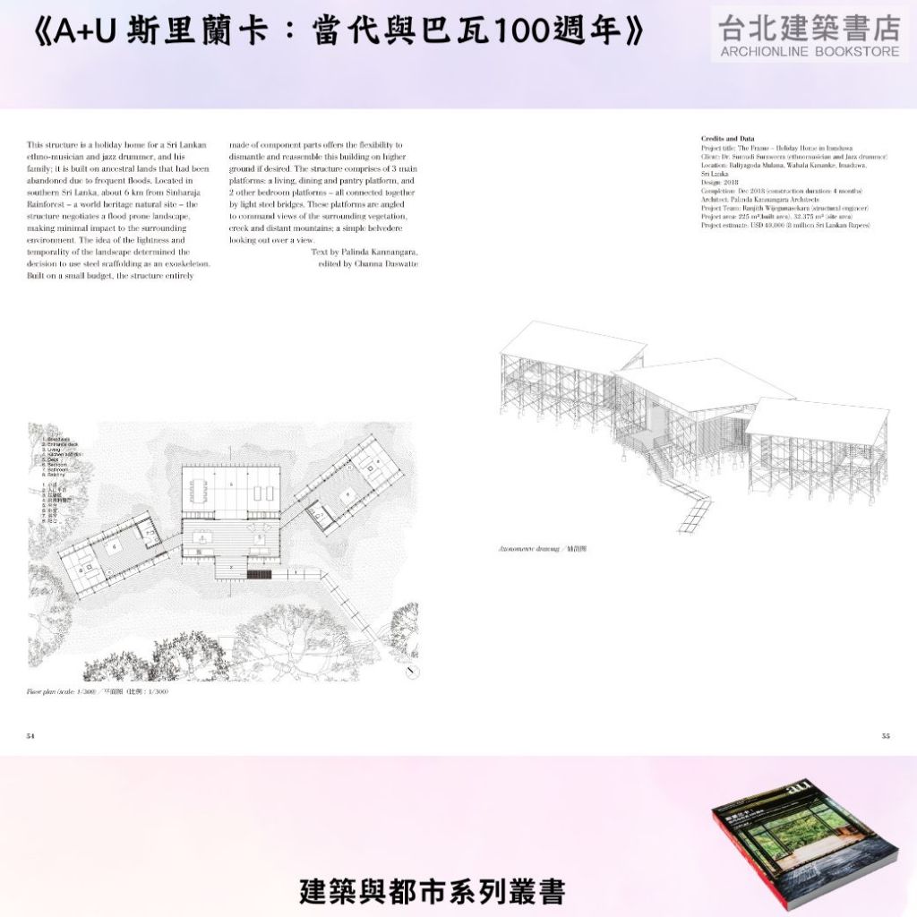 a+u曾在2011年6月的斯里蘭卡專輯裡收錄了建築家傑弗裡•巴瓦的一些代表作品,並講述了巴瓦帶給後輩的影響。本書中,a+u將持續聚焦斯里蘭卡,介紹新一代建築師的作品。在正文開篇,由美國現代藝術博物館建築與設計系副館長肖恩•安德森先生撰寫的文章中,我們將會了解斯里蘭卡的先驅建築家的早期作品是如何應對當時的殖民主義政治經濟的,以及他們如何為世界帶來了被稱為「熱帶現代主義」學派的近代地域建築。 1969年,斯里蘭卡首次設立了建築院校。之後,他們不斷挑戰傳統界限,逐漸誕生了新一代的建築師,他們共同塑造了斯里蘭卡建築的認同。本書的客座主編是錢納•達斯瓦特(MICD 協會、傑弗裡•巴瓦財團理事長、盧努甘卡財團理事)。本書收錄的19件作品將分三個部分介紹,以此追蹤受經濟、社會和文化現況影響的當代斯里蘭卡建築。