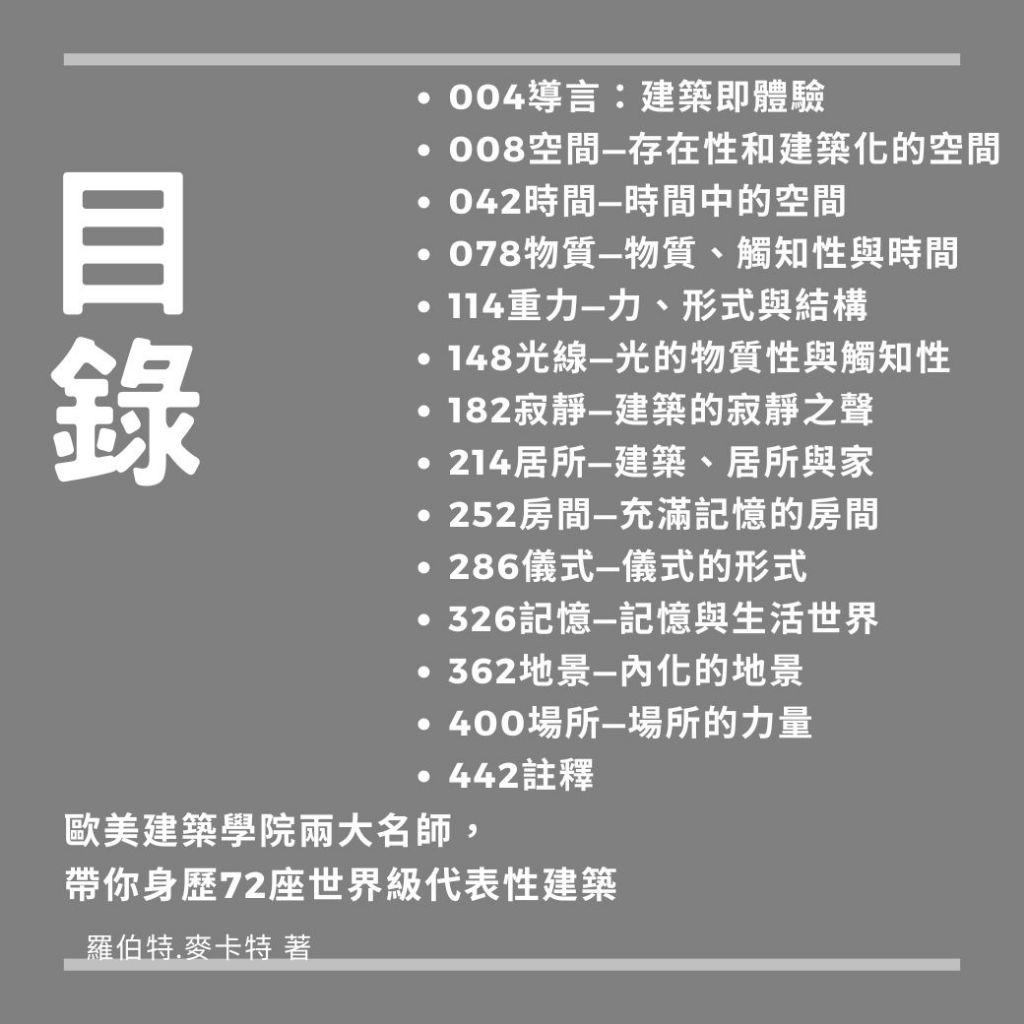 本書是一本為大眾讀者撰寫的建築入門讀物,目的在於為他們提供一種理解和體驗建築的全新的途徑。全書根據關鍵的建築主題劃分為12章,精心挑選包括埃及金字塔和悉尼歌劇院在內的72座代表性建築,引領讀者展開一場彷彿親身參與的“田野調查”。每章有一篇簡短的引言介紹相關概念和背景知識,然後用6個建築實例詳解該主題,搭配精美的建築照片和帶有觀賞路線的平面圖,為讀者帶來愉悅的閱讀體驗和身臨其境的在場感。