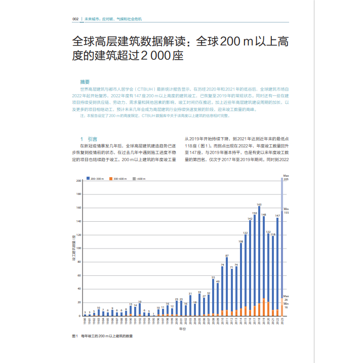 《未來城市:應對碳、氣候和社會危機——世界高層建築與都市人居前沿研究與案例解讀》基於世界高層建築與都市人居學會(CTBUH)最新的學術論壇、全球評獎、期刊出版、科學研究與數據統計分析成果,內容包括年度全球高層建築建造數據統計、分析與解讀,全球最佳高層建築與都市人居實踐,全球最佳高層建築精選案例解析,以及該領域最新科研成果和創新理念總結、分享。內容豐富,突出創新性、科學性、前沿性,聚焦和服務於城市管理、城市研究、城市開發、工程咨詢、建築設計、建築施工、物業管理與運營、建築設備與材料等領域的城市、建築產學研生態鏈上的管理者、研究者、設計師、工程師,幫助他們及時了解全球第一手前沿資訊,豐富學識結構,深入理解高層及超高層建築與都市人居環境的核心所在。