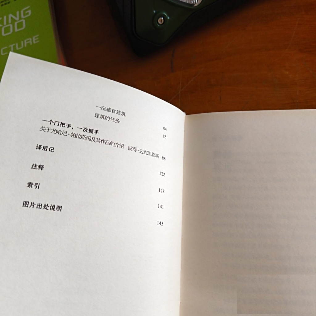 這些文字將帕拉斯瑪的個人傳記與建築思考的概要相結合,後者包括其起源,與北歐及歐洲古今思想的關系。這篇文章關注的重點是帕拉斯瑪從根本上對待建築人性、深刻、敏感的態度,並使讀者更加了解他。這些配圖來自帕拉斯瑪的草圖和他自己的攝影。