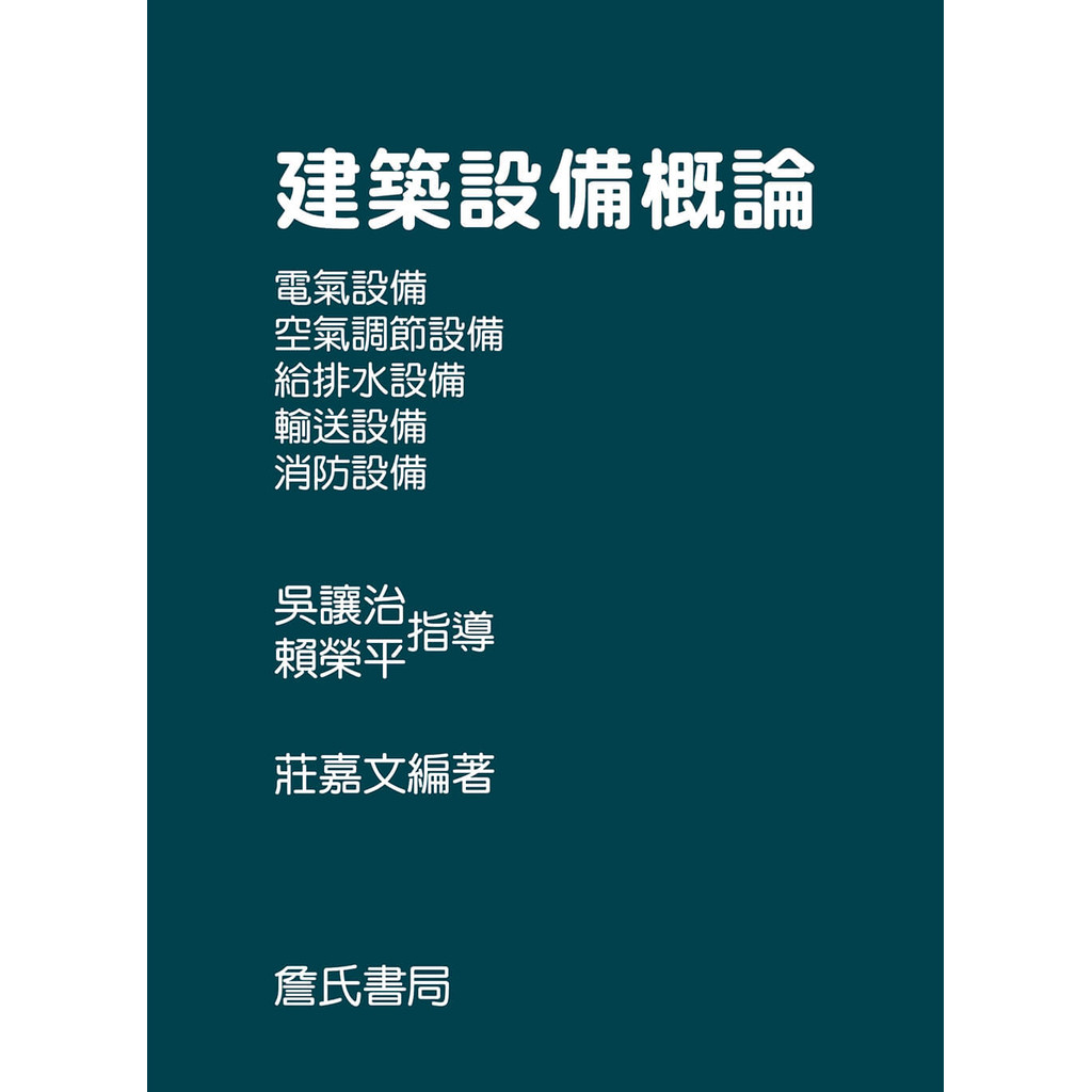 一本能溝通「建築」與「設備」兩者的書籍,此書主要根據筆者在成大七年中老師所傳授的知識,並參考數十本設備專業書籍,以及實際從事設備業之經驗累積寫作而成,本書內容包括:(一)電氣設備(電力設備及電子設備)(二)空氣調節設備(三)給排水衛生設備(四)輸送設備(五)防災設備等五章,在每一章節之前面部分都會先將各項設備之系統作一番概括性介紹,使讀者能夠具備基本的數字概念,而後再分別說明各項裝置之設置目的,種類及天數的設計程序,最後再與建築結合一起,探討建築設計施工,及法規上所應考慮的事項。第一章 電氣設備