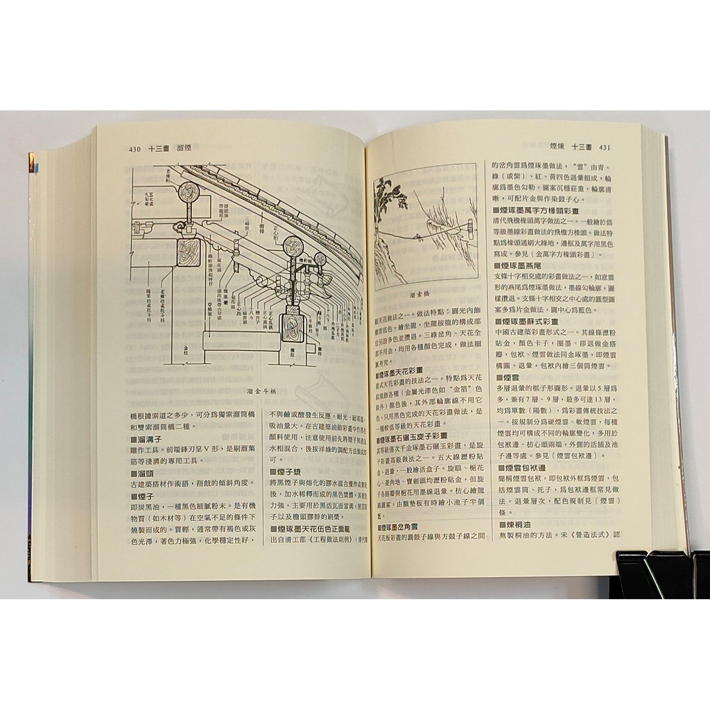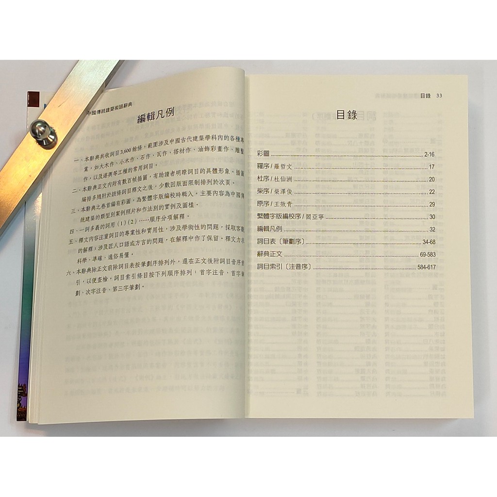 內容以古代典籍、式樣、材料、作法(包含木作、磚石作、彩畫、彩繪、雕鑒……)等術語為主,收錄了 3,900 多條詞彙、五百多幀插圖,為歷來最完整的中國傳統建築工具書之一。本書適用於中國建築的設計、施工、修繕、研究、