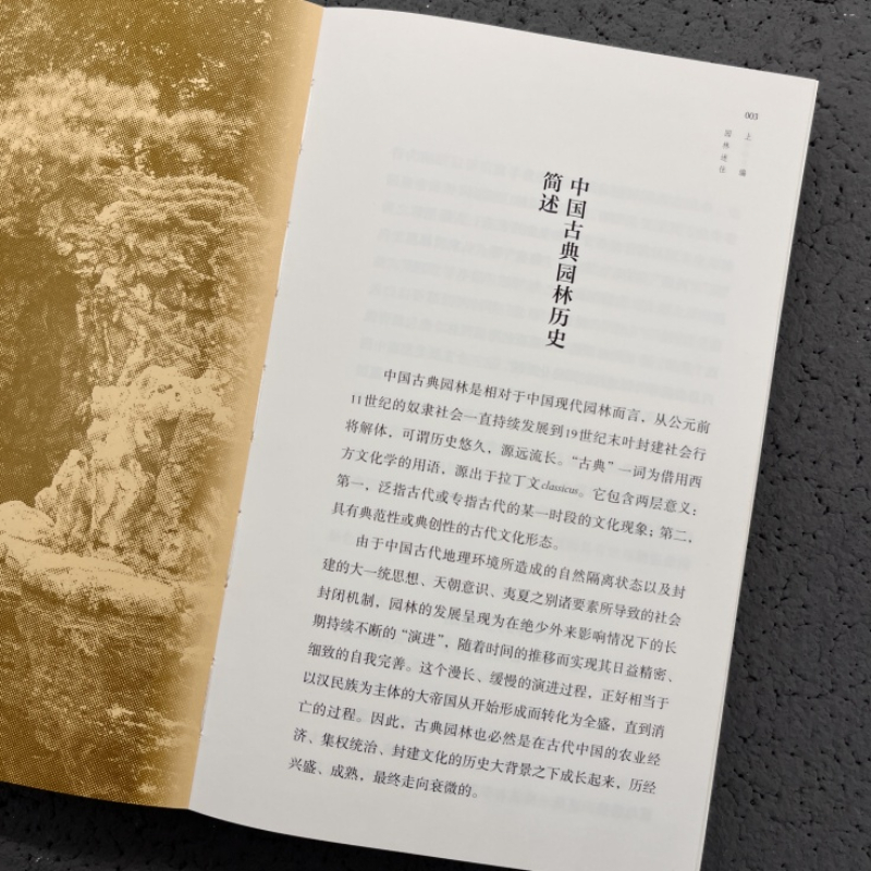 “本於自然又高於自然是中國古典園林創作的主旨。其目的在於求得一個概括、精練、典型而又不失其自然生態的山水環境,使人工創作合乎自然之理,獲致天成之趣,使園林中的建築美與自然美相融糅,達到天人和的境界,這也是中國風景式園林的本書。者周維權,畢生致力於中國古典園林的研究,在業界享有盛譽。