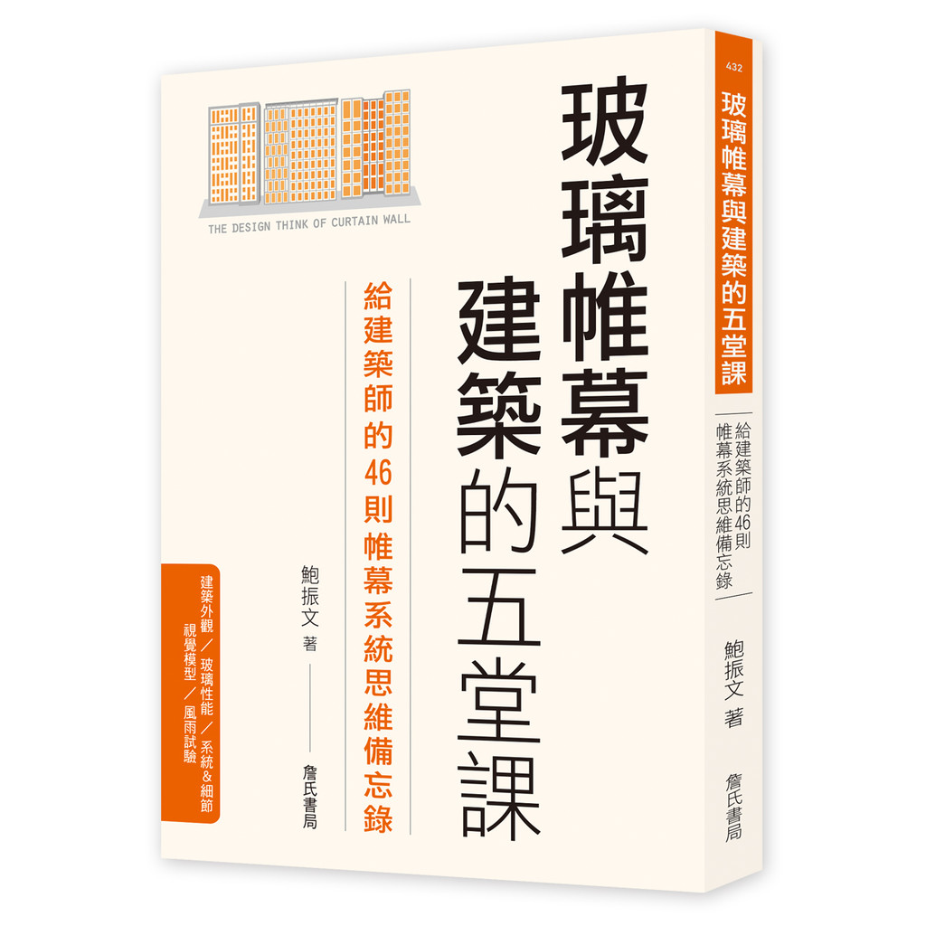 感謝公司、主管讓我有學習成長的空間,感謝詹氏出版社促成本書付梓,感謝本書編輯May 與行銷Grace,讓章節編排更符合這個時代的閱讀趨勢,感謝蔡國林技師,不厭其煩地與我討論並且不藏私分享寶貴經驗。感謝合作過的建築師事務所、帷幕施作廠商、玻璃製造商,我們一起經歷發現問題、解決問題的燒腦過程。感謝提供珍貴記錄照片的同仁好友。最後,感謝家人數年來支持我的寫作計畫!◇ 前言
