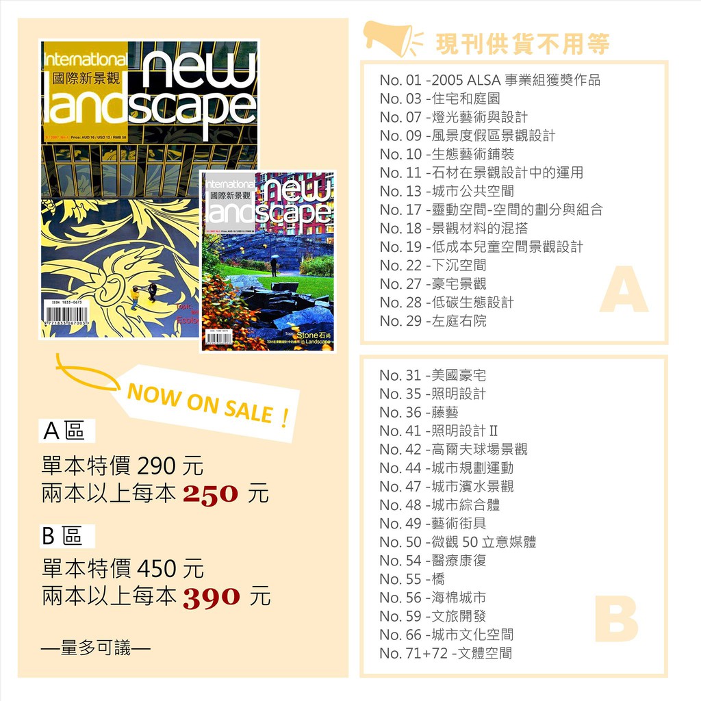 “《國際新景觀》是中國景觀行業一流的景觀設計類雜誌,也是全角度的媒體服務提供商,雜誌依托豐富的資源以及國際化的編輯團隊,刊載全球最前沿的景觀設計資訊,剖析全球優秀的景觀案例,為行業提供多元化的設計方向,旨在促進國內外設計行業的深度交流。憑藉一流的品質及業界的影響力,《 國際新景觀》獲得了行業內的一致肯定,並已成為國內政府部門,建築、規劃、景觀界、地產界及學術界的權威雜誌。