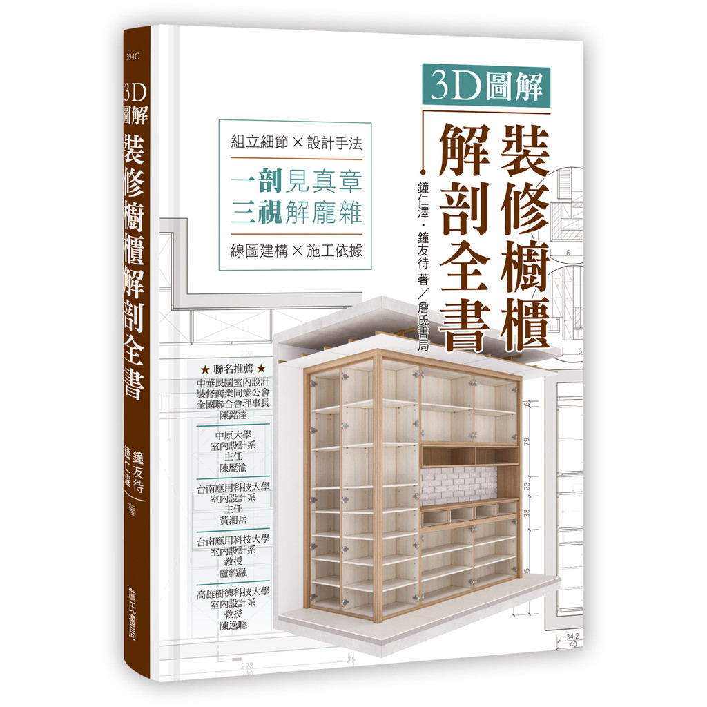 裝修櫥櫃的結構繁複且極富變化性,繪製一套完整清晰的施工圖向來是項挑戰。本書採用2D、3D圖對照方式,選錄58種櫃體進行細部解剖,原本龐雜的木作構件資訊,透過三視細部剖析變得一目了然,而設計師與工班向來依圖難以溝通的障礙,書內公開的全套2D施工圖無疑是最佳解方!